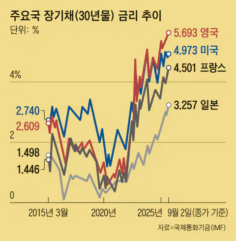 재정 불확실성 속 글로벌 장기채 금리 급등
