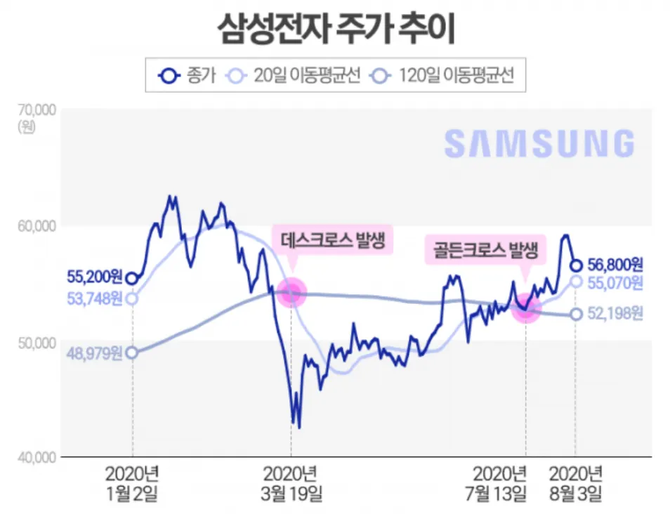 단기 이동평균선과 장기 이동평균선이 교차하는 순간은, 주가의 흐름에서 의미 있는 전환이 발생한 것으로 해석할 수 있어요.