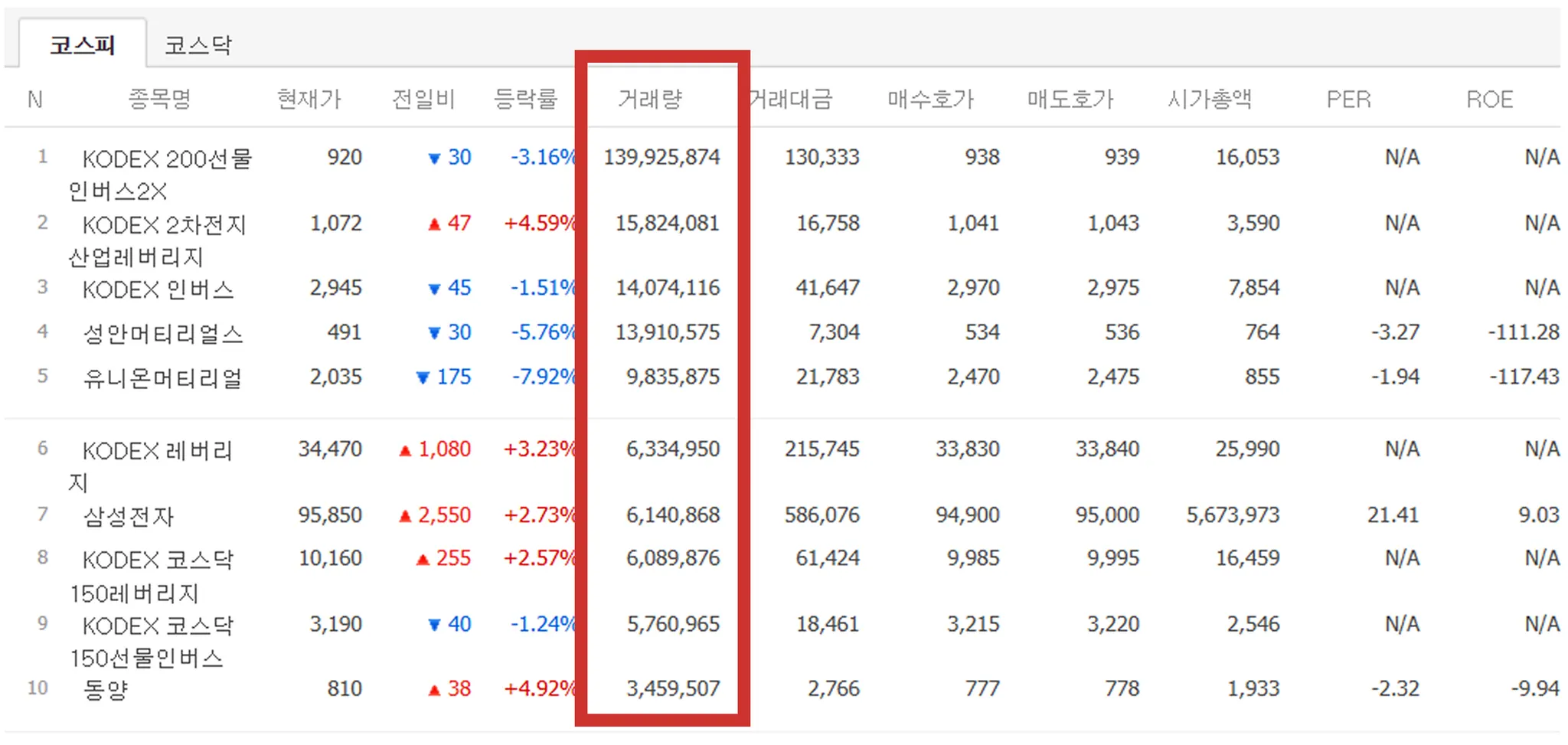 거래량 상위 종목은 포털 사이트나 증권사 앱에서 쉽게 확인할 수 있어요.