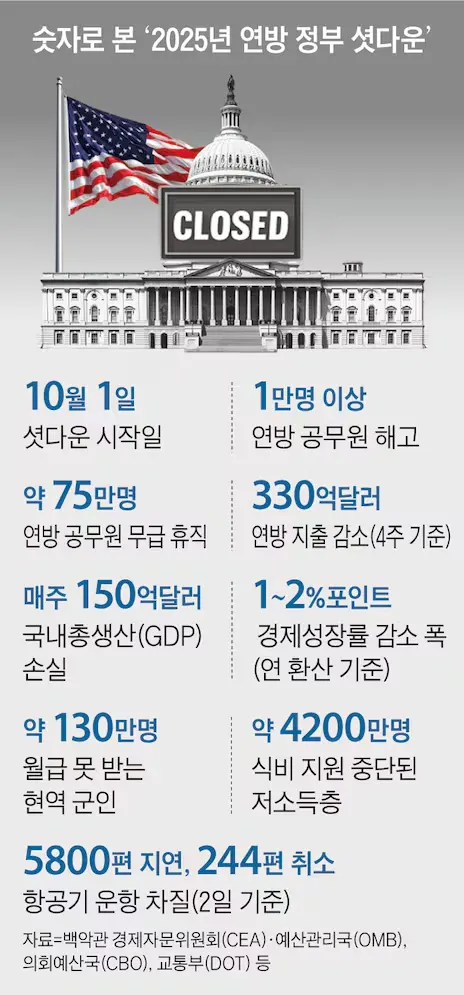 셧다운이 길어질수록 생산성 저하, 납품 지연 등 실물경기 둔화 압력이 커집니다.