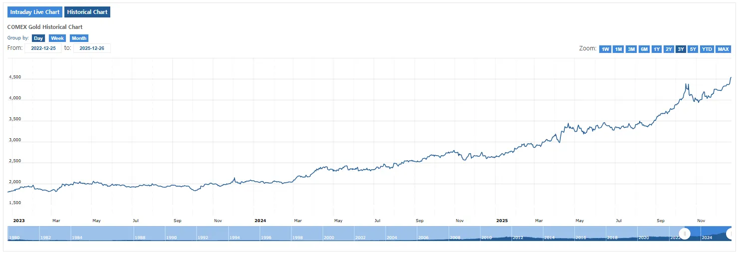 이번 글에서는 이러한 금값 상승 흐름을 살펴보고, 가격 상승의 배경과 2026년 전망까지 차례로 정리해보겠습니다.