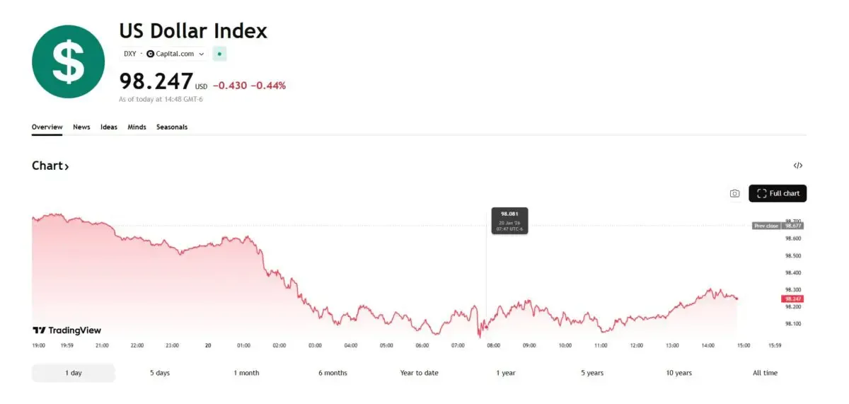 2026-01-21 달러인덱스 I 출처: BLOCKMEDIA