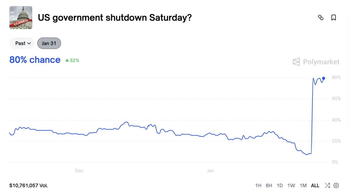 31일까지 미 연방정부 셧다운 발생 가능성 예측 ㅣ 출처: BLOCKMEDIA