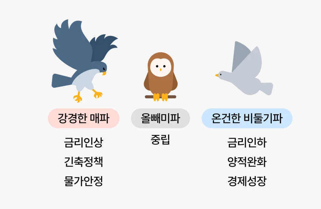 바로 매파(Hawkish)와 비둘기파(Dovish)입니다.