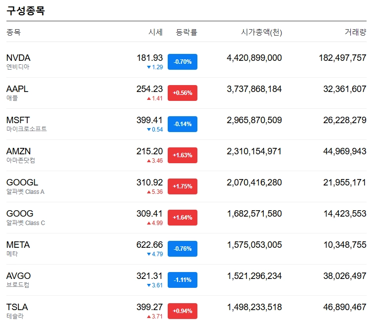 또한 나스닥은 시가총액 방식의 주가지수이기 때문에 애플, 엔비디아, 구글과 같은 시가총액이 큰 기업들의 영향을 크게 받는 특징이 있고, 이들 주요 기업의 주가가 하락하면 지수 역시 함께 움직이는 경향을 보입니다.