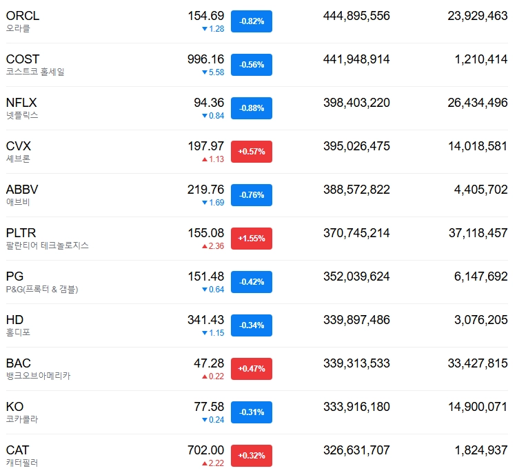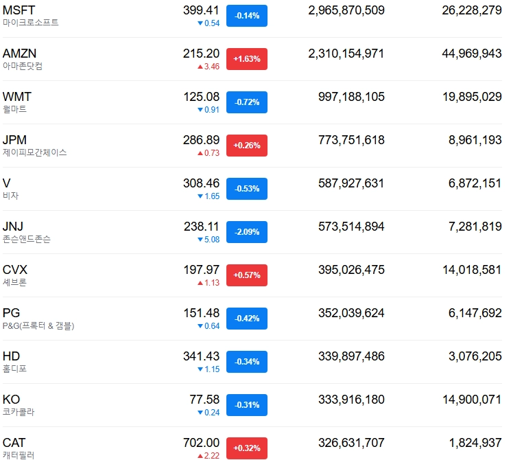 또한 코카콜라, 맥도날드, 보잉 등 미국을 대표하는 대형 기업들이 포함되어 있어 전통 산업 중심의 안정적인 흐름을 보여주는 지수로 볼 수 있습니다.