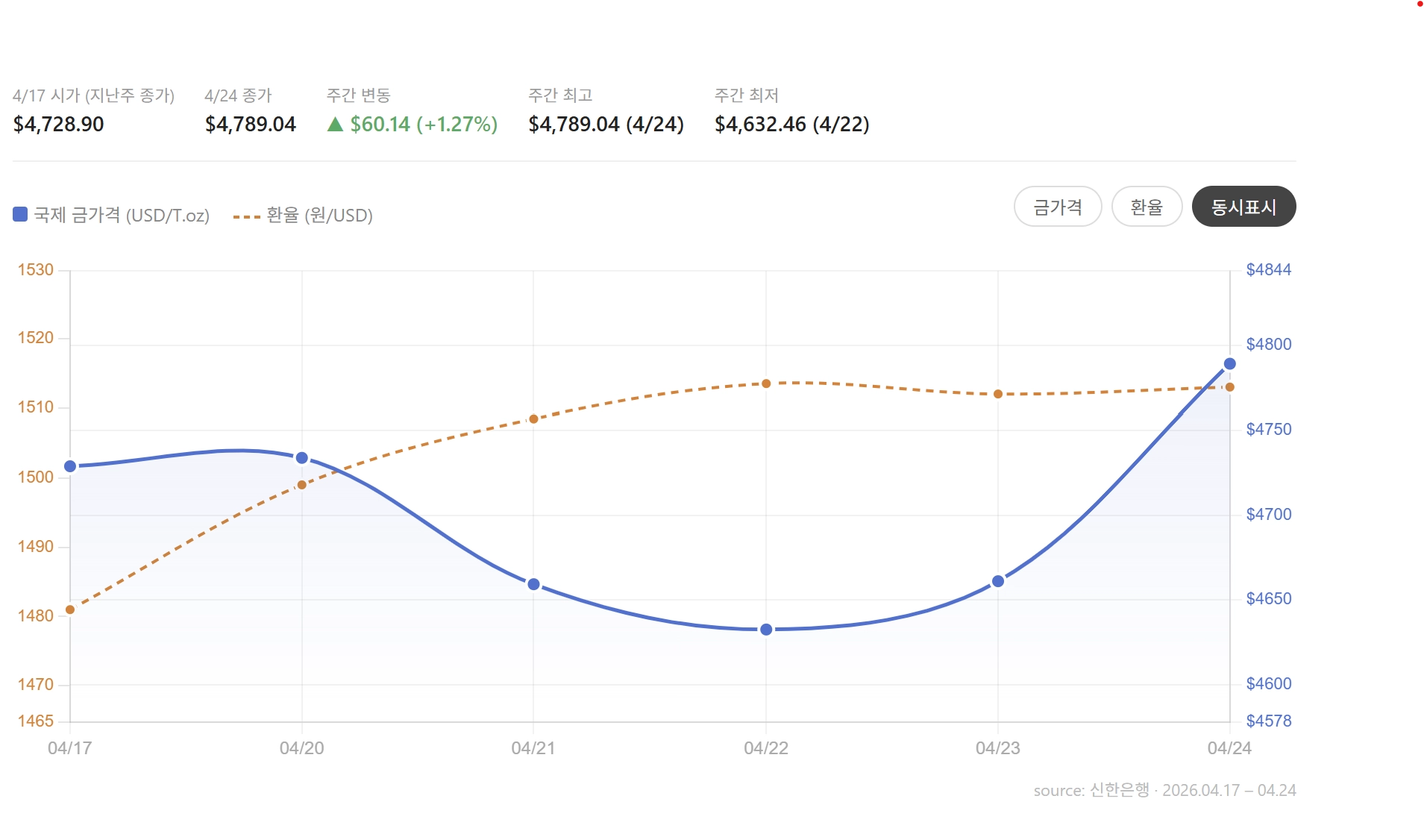 2026년 4월 24일 오늘의 금시세 및 동향 소식을 전해드려요