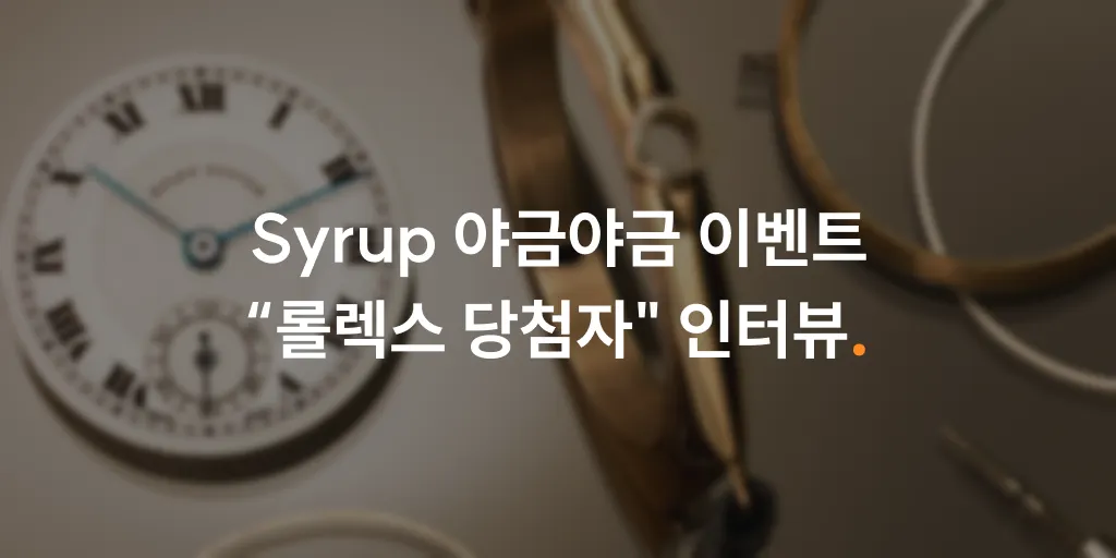 1500만 원 상당의 롤렉스 서브마리너 논데이트를 받으신 소감도 너무 궁금하고 트레져러 X Syrup 야금야금 서비스를 이용하시면서 불편하셨던 점이나 바라는 점을 듣고 싶어 간단한 인터뷰를 요청했습니다.