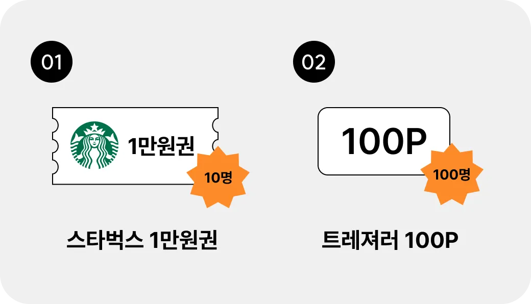 추첨을 통해 선정된 100명에게는 트레져러 포인트* 100P를 드립니다!