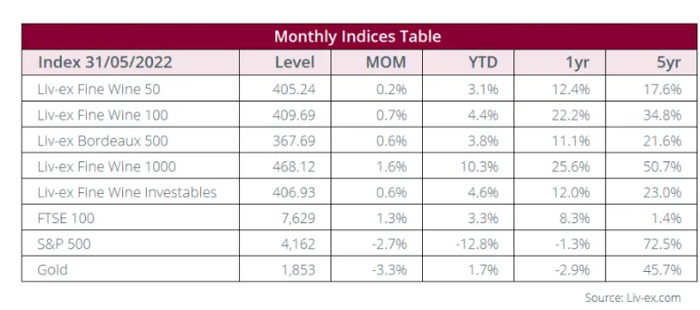 2022년에도 상승세는 이어졌습니다. ‘2020 Burgundy Vintage’와 같은 성공적인 캠페인에 힘입어, FW100과 FW1000는 각각 1.9%, 3.5% 상승했습니다. 지난 분기 동안, Liv-ex의 ‘Liv-ex Fine Wine 50’(이하 ‘FW50’), FW100, FW1000은 각각 2.3%, 2.9%, 7.3% 상승했습니다. FW100의 1분기 상승 폭은 2021년보다 완만하지만, FW1000은 Burgundy와 Champagne의 강세를 반영하여 두드러지는 실적을 보여줍니다.