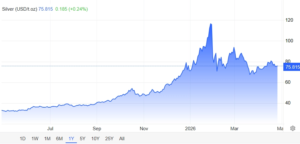 온스당 약 32달러에서 77달러 수준까지 상승하며 약 137% 상승