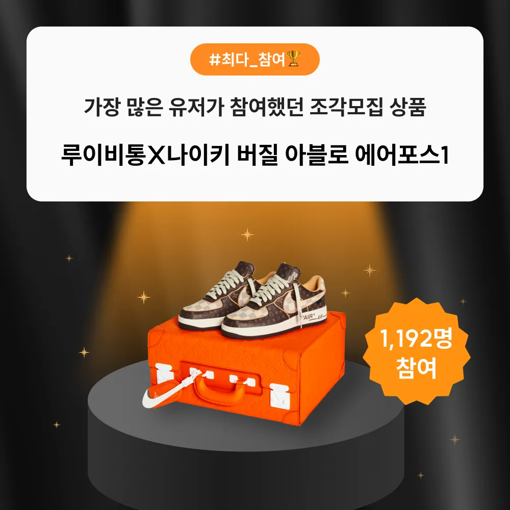 조각판매에 1,192명이 참여한 루이비통 X 나이키 버질 아블로 ‘에어포스1’입니다.