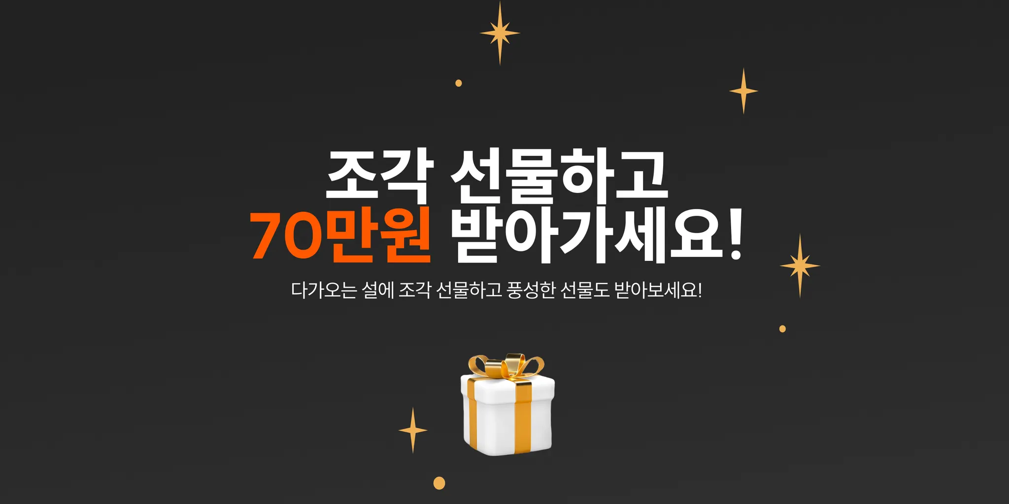 참여하신 분들 중 70분을 뽑아 70만원 상당의 조각을 나눠드립니다.